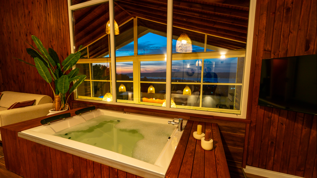 3+1 Trio Suite Jakuzi Villa tipi odamızın Özel Geniş Isıtmalı Havuzu (3x5m 1.50 m derinlik), Barbekü imkanları, Bahçe oturma grubu mobilyaları, modern gümbet bahçe salıncağı ve şezlong da içeren yemyeşil bir bahçe avlusu bulunmaktadır. Villanın üst katında Sapanca Gölü’nüne karşı uyanacağınız, odanın içinde Jakuzi bulunan French Bed bir yatak odası, alt katında da isteğe göre birleştirebilir ya da ayrı yataklı olarak da kullanılabilen ilave 2 adet yatak odası bulunmaktadır. Kendinizi evinizde hissedeceğiniz Trio Suite Villamızda; Şömine, Mini Mutfak, Oturma grubu, Yemek Masası, Smart TV, Minibar, Buzdolabı, Çamaşır Makinesi ve Ütü imkanları da yer almaktadır.